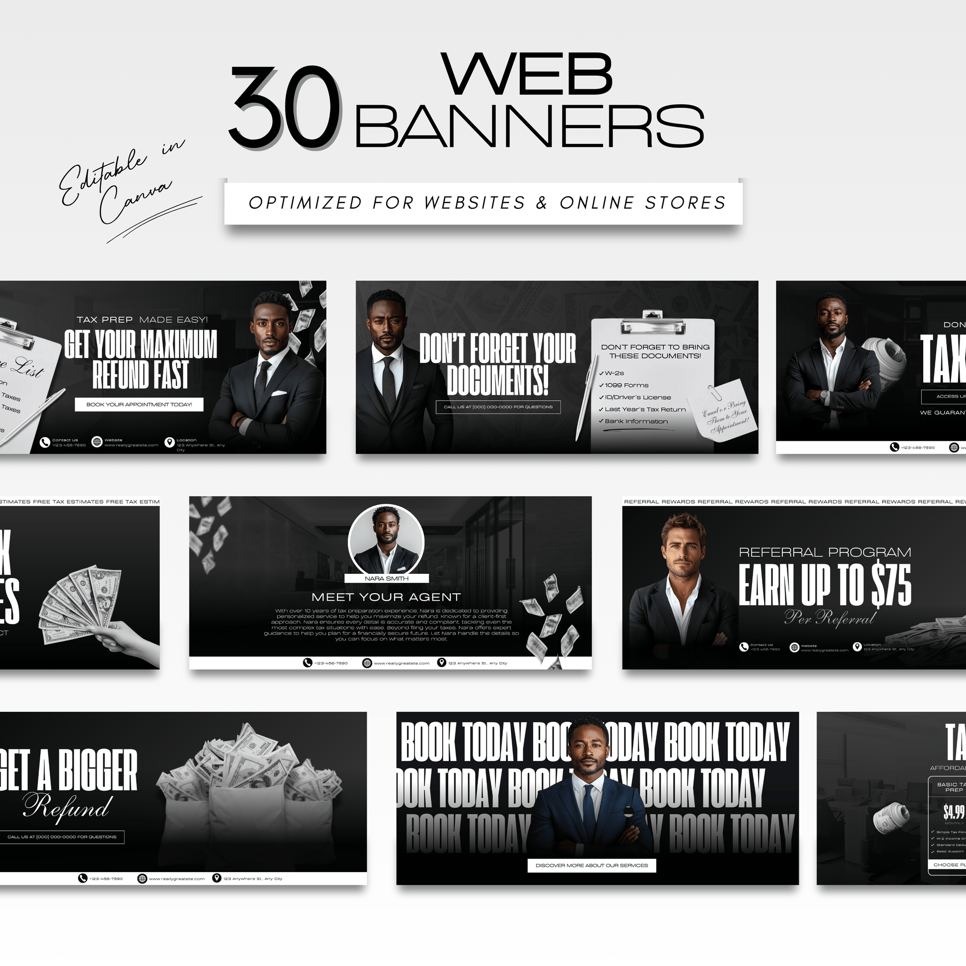 60 Noir Luxury Tax Prep Banners | Elite Black Accountant Website Templates