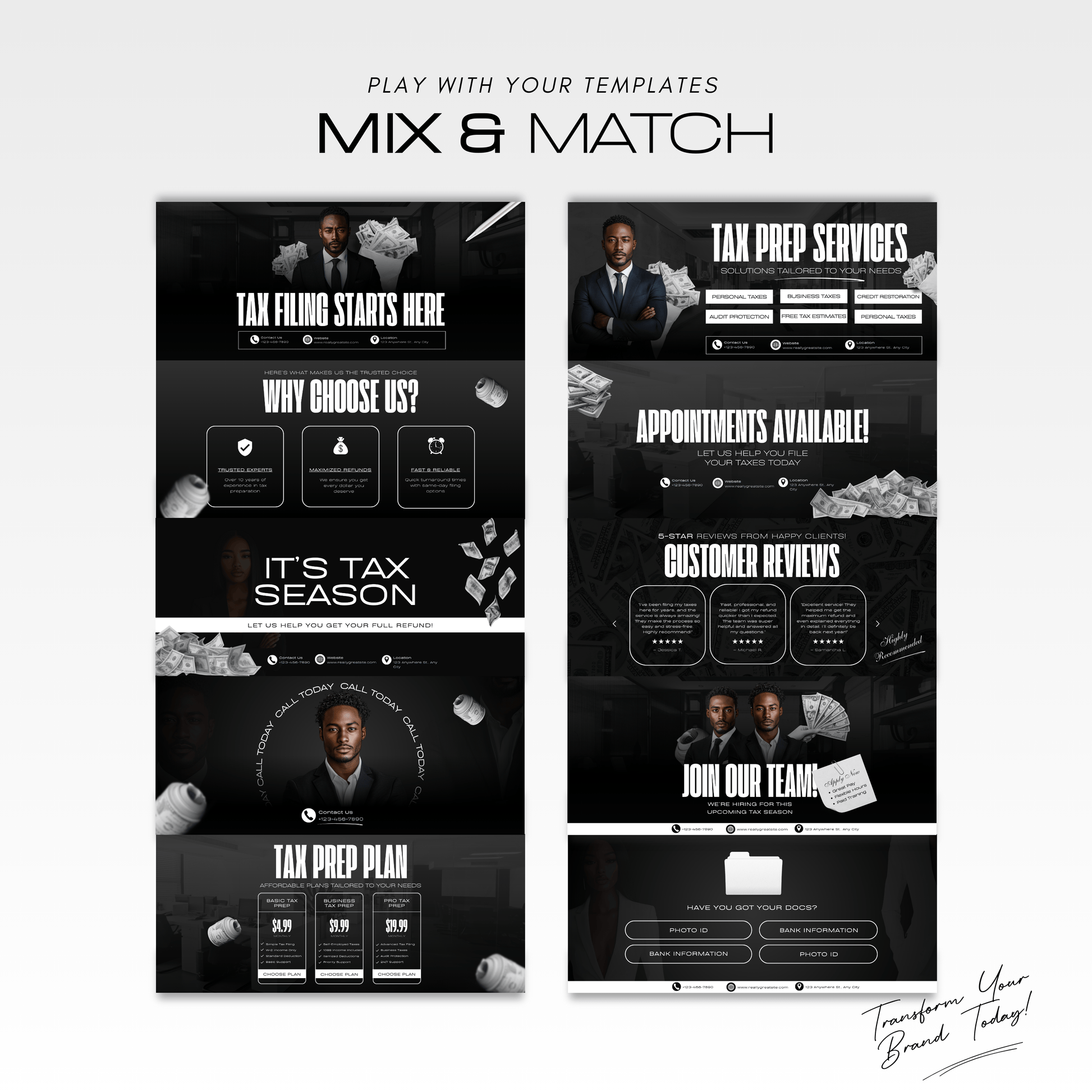 - π° Tax Prep Services: Highlight your elite filing packages.