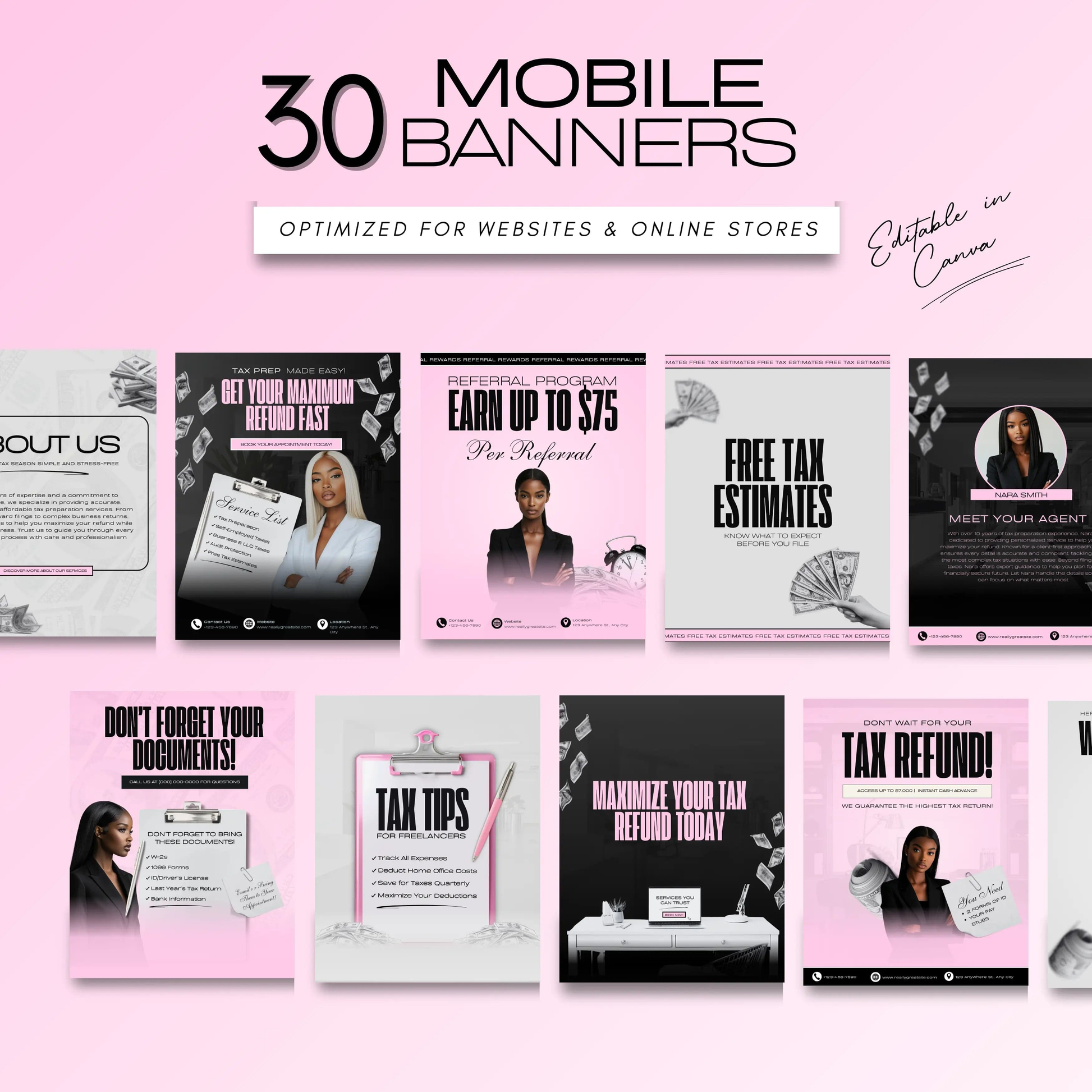 π Stand Out This Tax Season: The Pink Glam Banner Collection