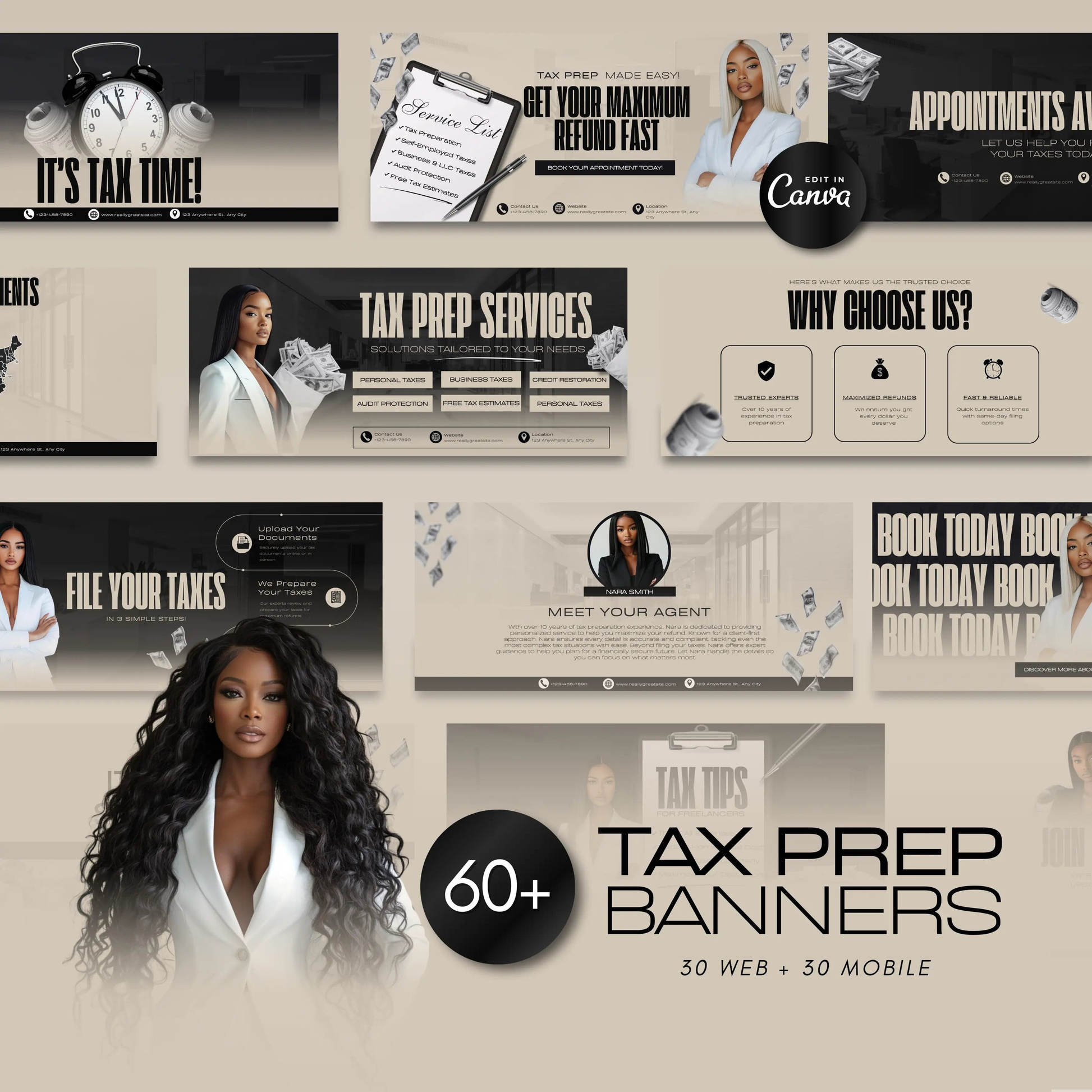 π Executive Branding: 60 Professional Black and Grey Tax Prep Banners