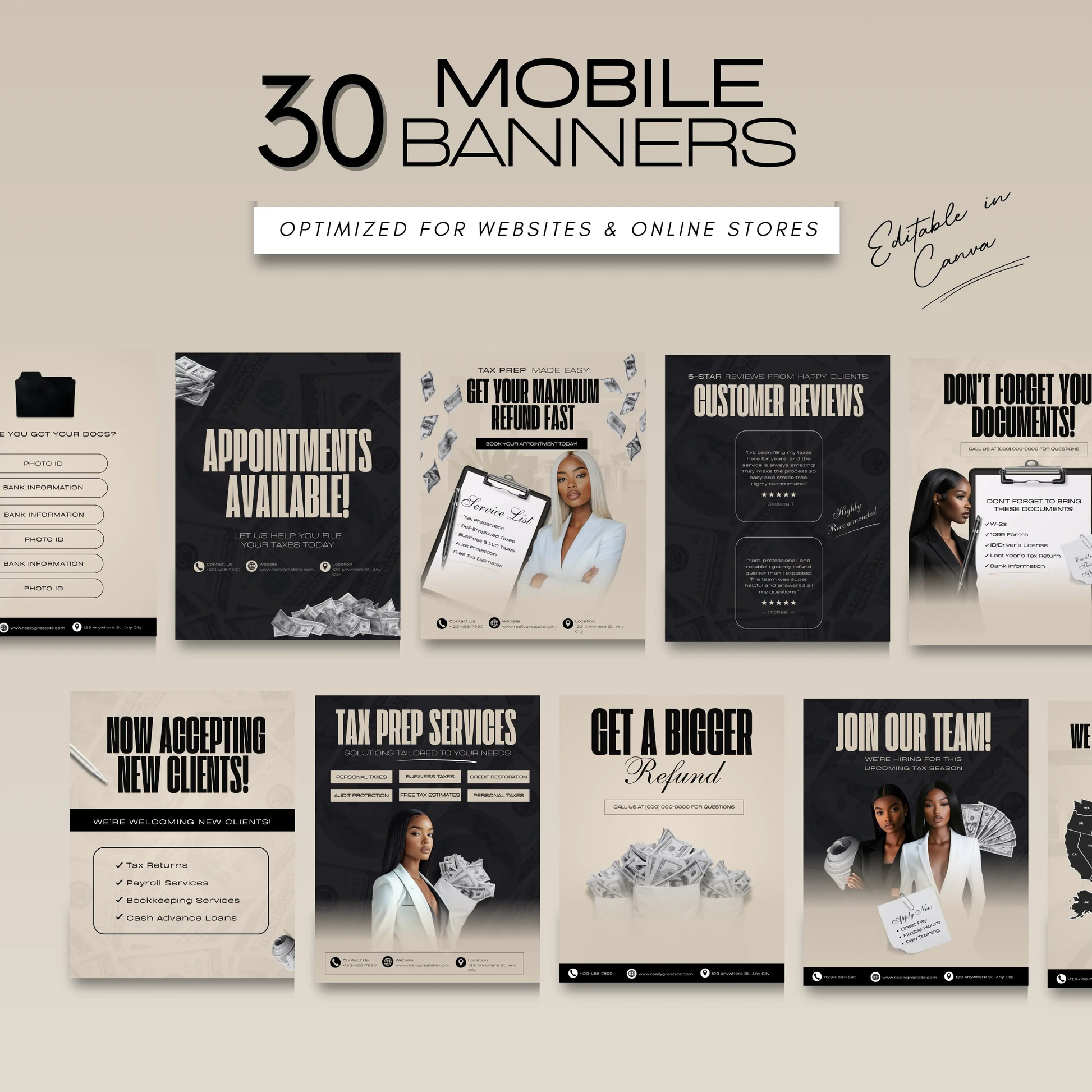 - π± 30 Mobile-Optimized Banners: Ensure your marketing looks flawless for clients browsing on their smartphones.